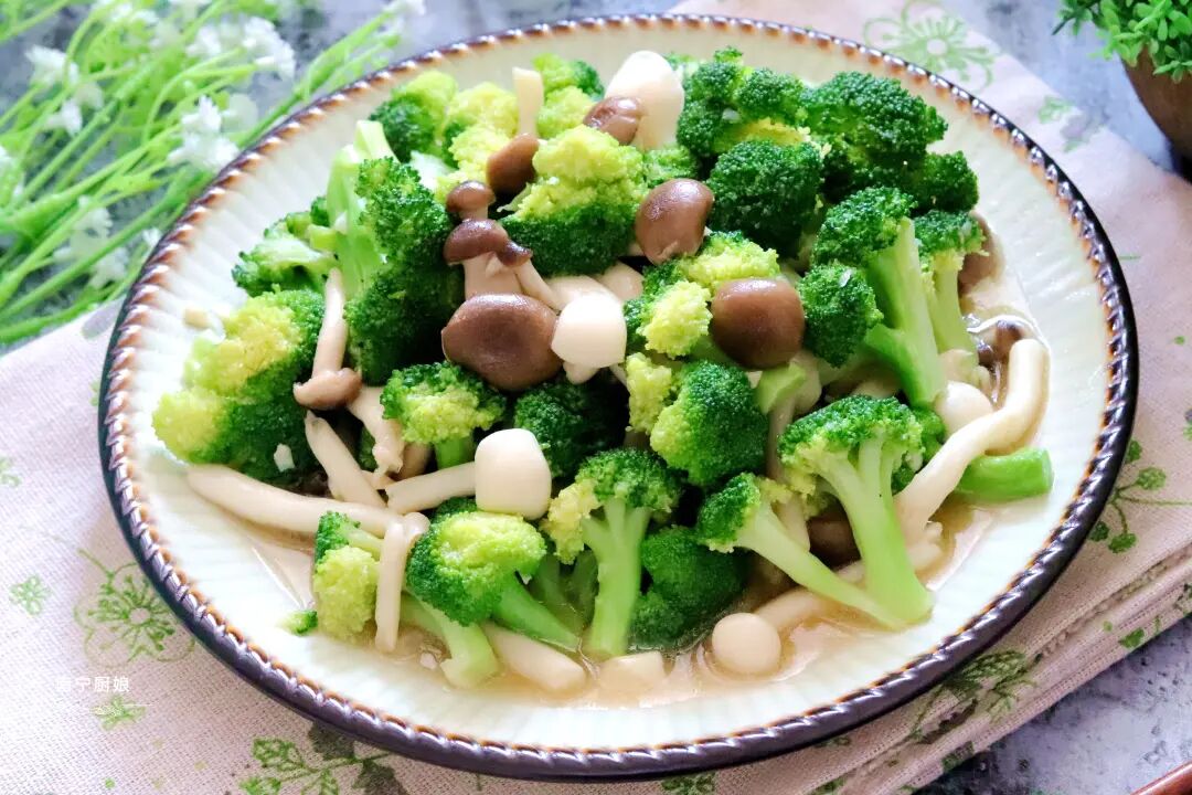 出锅装盘,一盘色香味俱全的鲜菇西兰花就做好啦!