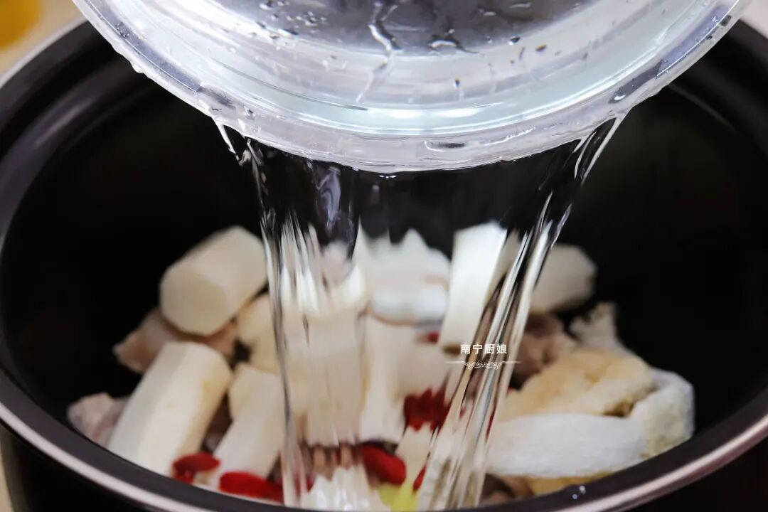 5、倒入没过食材的清水,喜欢喝汤的可以多放点。