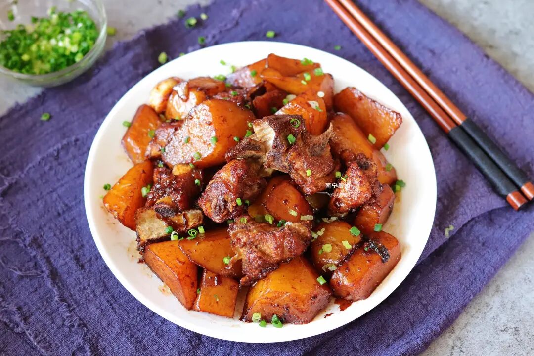 土豆烧排骨是一道经典的家常菜,是四川地方特色佳肴。主要食材就是排骨和土豆,而其中土豆富含淀粉,却热量极低,是减肥人士的理想食品。而排骨能够为人体提供丰富的优质蛋白质、钙质,能够促进骨骼发育和健康,而且还具有补气血的作用,是秋天最佳滋补食材之一。