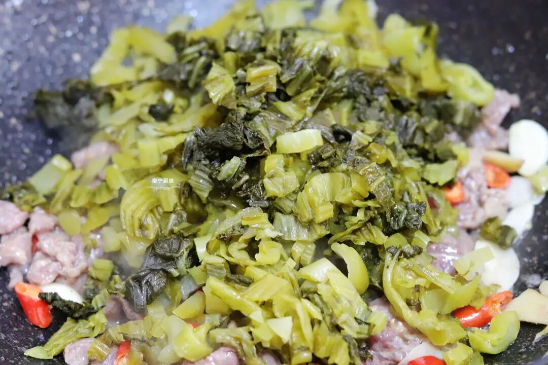 3、酸菜本身自带咸味,所以炒菜时需要酌情放食盐,也可以不放。