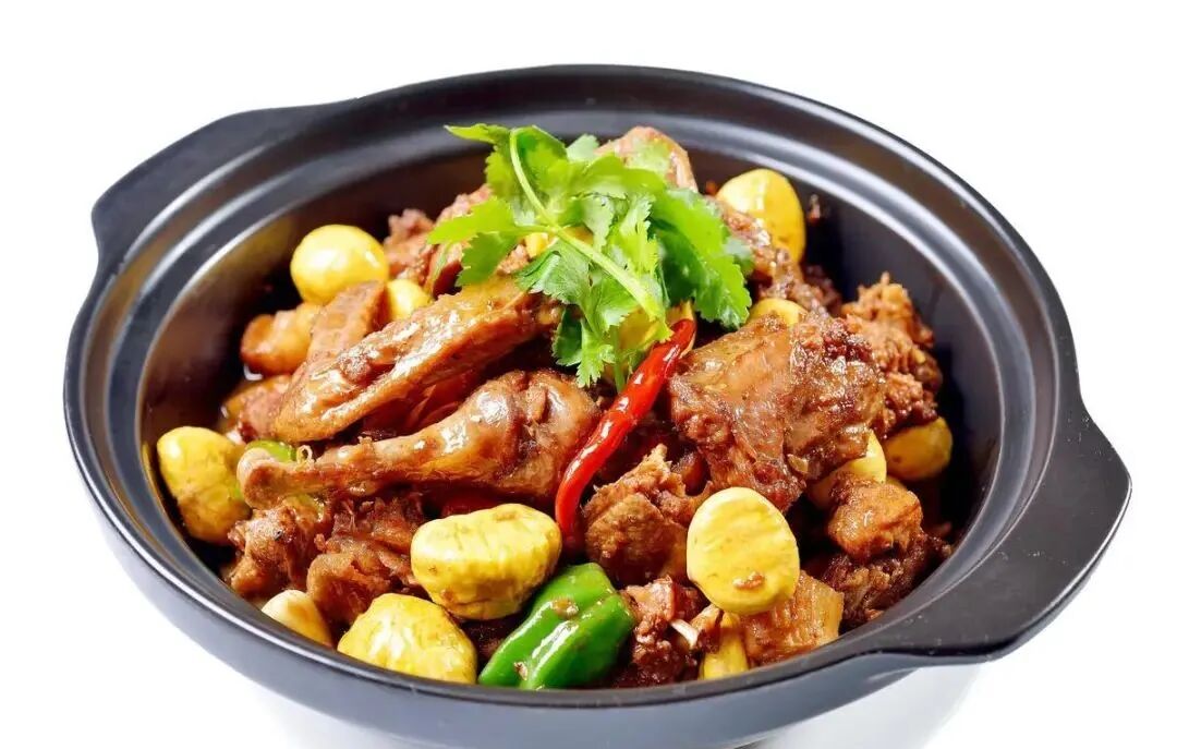第三步:在锅中加入没过鸡块的水量,然后将板栗放入锅中,将水烧开之后,转中小火后再炖15分钟,随后加入水淀粉便可出锅。