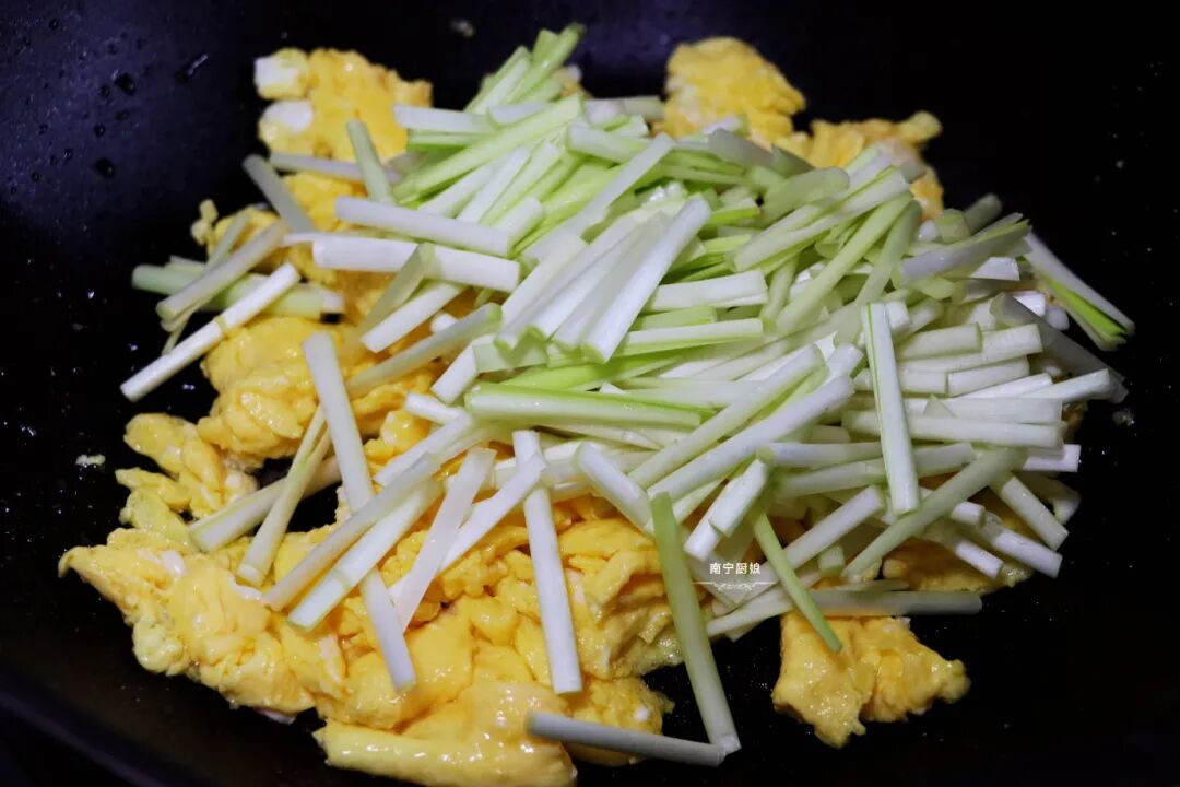 韭黄最简单也最鲜嫩的做法,就是韭黄炒蛋了,比起韭菜炒鸡蛋来说,韭黄的口感更脆嫩更鲜香,搭配嫩滑的鸡蛋一起清炒,鸡蛋当中的蛋香味融入了韭黄独有的清香,吃起来的味道不但嫩滑还带有嚼劲。
