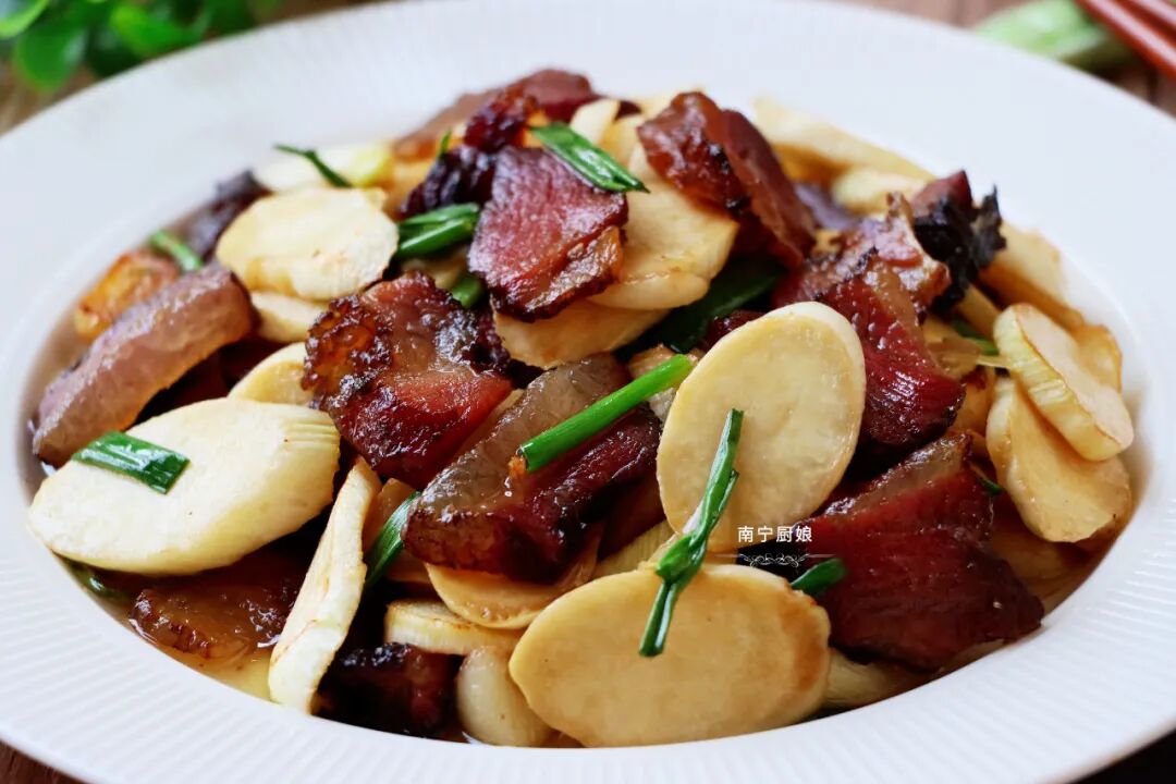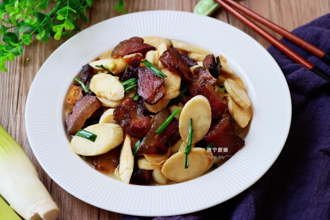 估计现在很多朋友住在城市里,都很少能见到茭白的影子,更不用说用来制作美食了。但其实茭白的口感跟竹笋类似,吃在嘴里带有一些嚼劲,而且茭白不像韭菜或者是韭黄,带有明显的香味,而是比较清淡的,因此茭白一般都用来搭配一些口味比较重点配菜,就像腊肉或者腊肠一类,让腊肉咸香的味道通过烹饪的高温,融入进茭白当中,既能够中和腊肉的咸味,还能让茭白增加更丰富的口感,也十分的好吃!