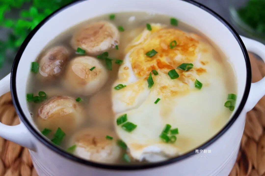 这样做出来的口蘑鸡蛋汤,鲜甜又美味,在初秋的时候,吃一些口蘑,在养护肝脏的同时,还能够促进肠胃排毒,而鸡蛋当中含有丰富的蛋白质,两种食材组合在一起,既能够补充身体的营养,还能品尝到初秋第一口的鲜味,这样便宜又美味的美食,大家赶快在家里试试吧!