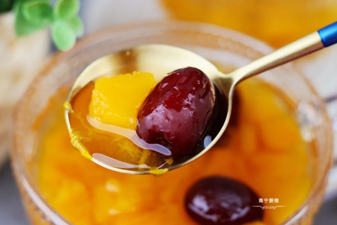 时间到之后,我们香甜软糯的黄金南瓜红枣羹就制作好了。这样做出来的南瓜红枣羹,非常的香甜丝滑,炖得软烂的南瓜,入口即化,而且南瓜当中还含有不少红枣以及冰糖的香甜味,口感也是非常的丰富。