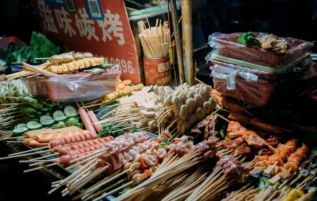 南北的小吃街很有名气,食物和北方一样,什么都用来烤,只是分量比较小。就说烤玉米好了,北方的烤玉米是整个烤,烤过之后的玉米焦嫩可口。南方的烤玉米不是整只,而是将玉米粒串起来的。