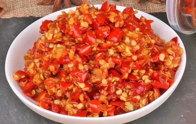 发酵好的红色剁椒酱会有白酒的味道,里面的辣味也能够散发出来。一般会在里面放入大量的盐,如果不太喜欢过咸的,可以相对少放一点。做好的红色剁椒酱,随时吃随时拿出来。颜色红红的,看起来就非常好吃,直流口水。在加入剁椒酱之后,鸡蛋也变得非常好吃,总之这是一道不错的菜。辣椒中含有的各种元素,也正是人体所需要的。