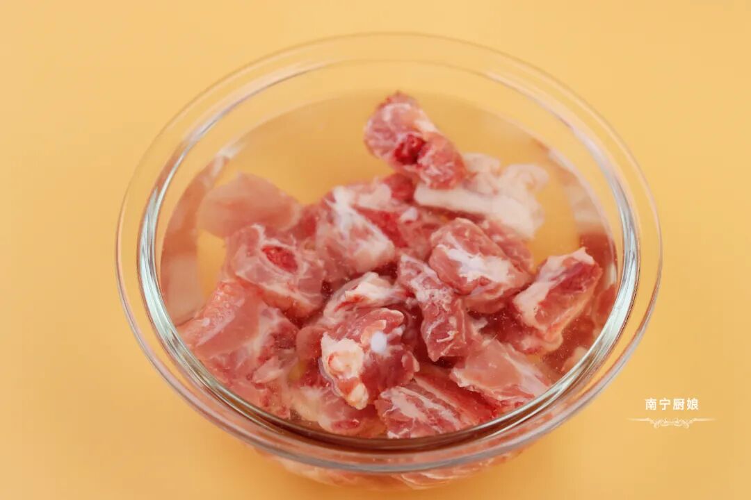 1、从市场上买回来新鲜的排骨,先放在温水里浸泡30分钟给排骨进行清洗去腥,在浸泡的过程当中,可以让排骨当中的血水流出来,大家记得要用40度左右的温水即可,温水可以加速排骨当中的淤血流动,那么就可以很快的缩短浸泡时间。