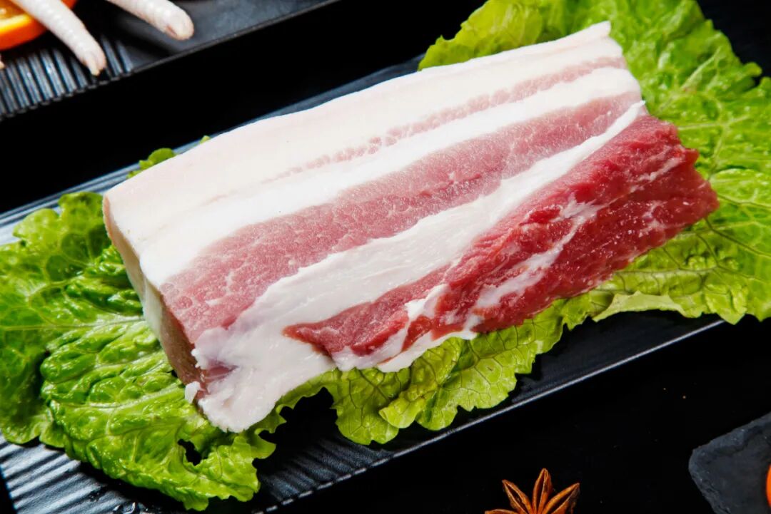 五花肉是猪腹部位置的肉,非常柔软细腻,瘦肉和肥肉分层均匀,错落有致,间距大小相差不大。
