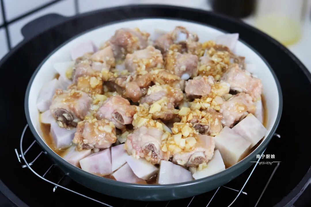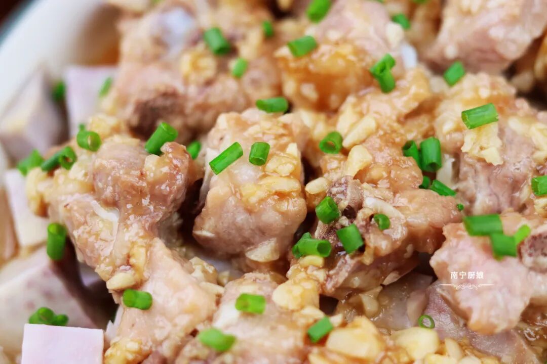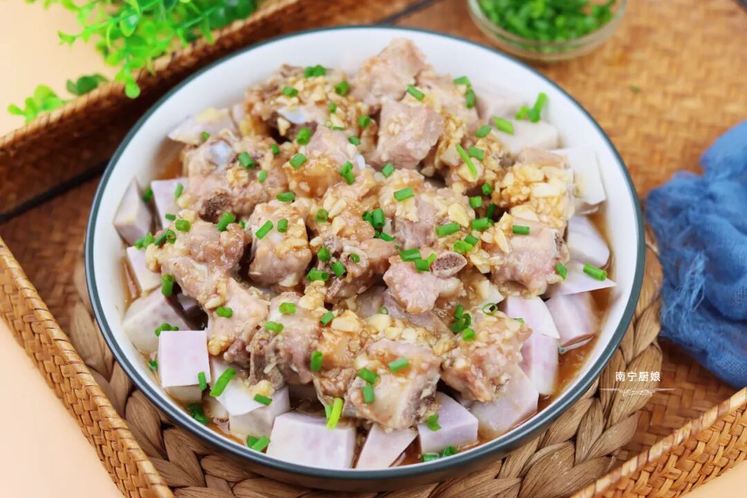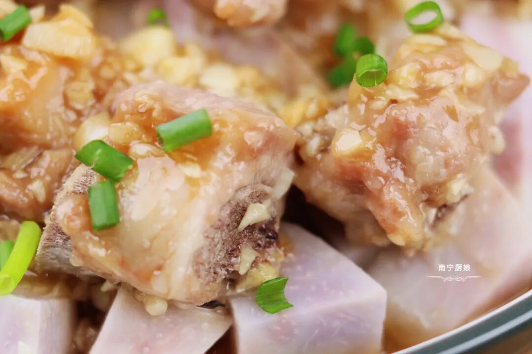 广式做法里,还会放有豆豉,那就会增加一些发酵的酱香味,大家可以根据自己的口味喜好添加,有些人不太能接受豆豉的味道,那么就像厨娘这么操作就可以啦!排骨当中含有丰富的钙和蛋白质,和芋头组合在一起,营养比牛肉还丰富8倍呢,这样一道简单营养又好吃的美食,老人小孩都可以吃,大家赶快也试试吧!