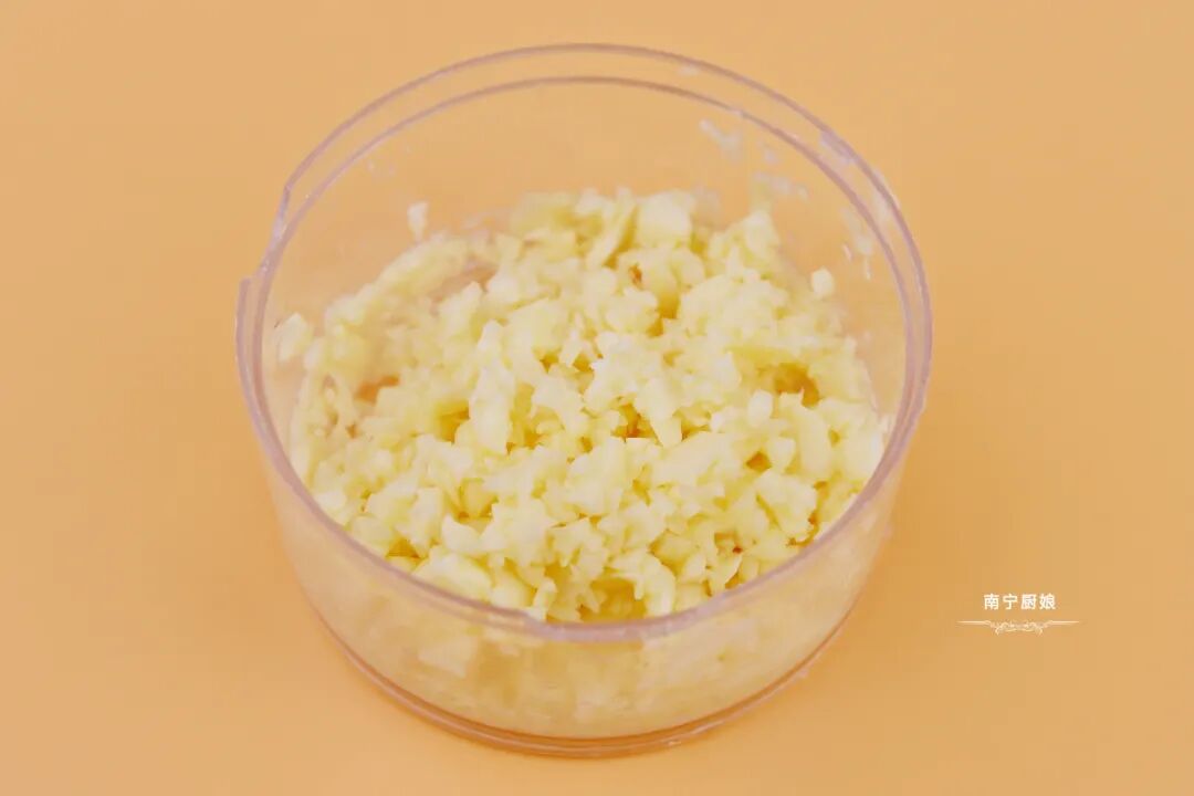 1、蒜米去掉外皮之后,用搅蒜器打成蒜泥。