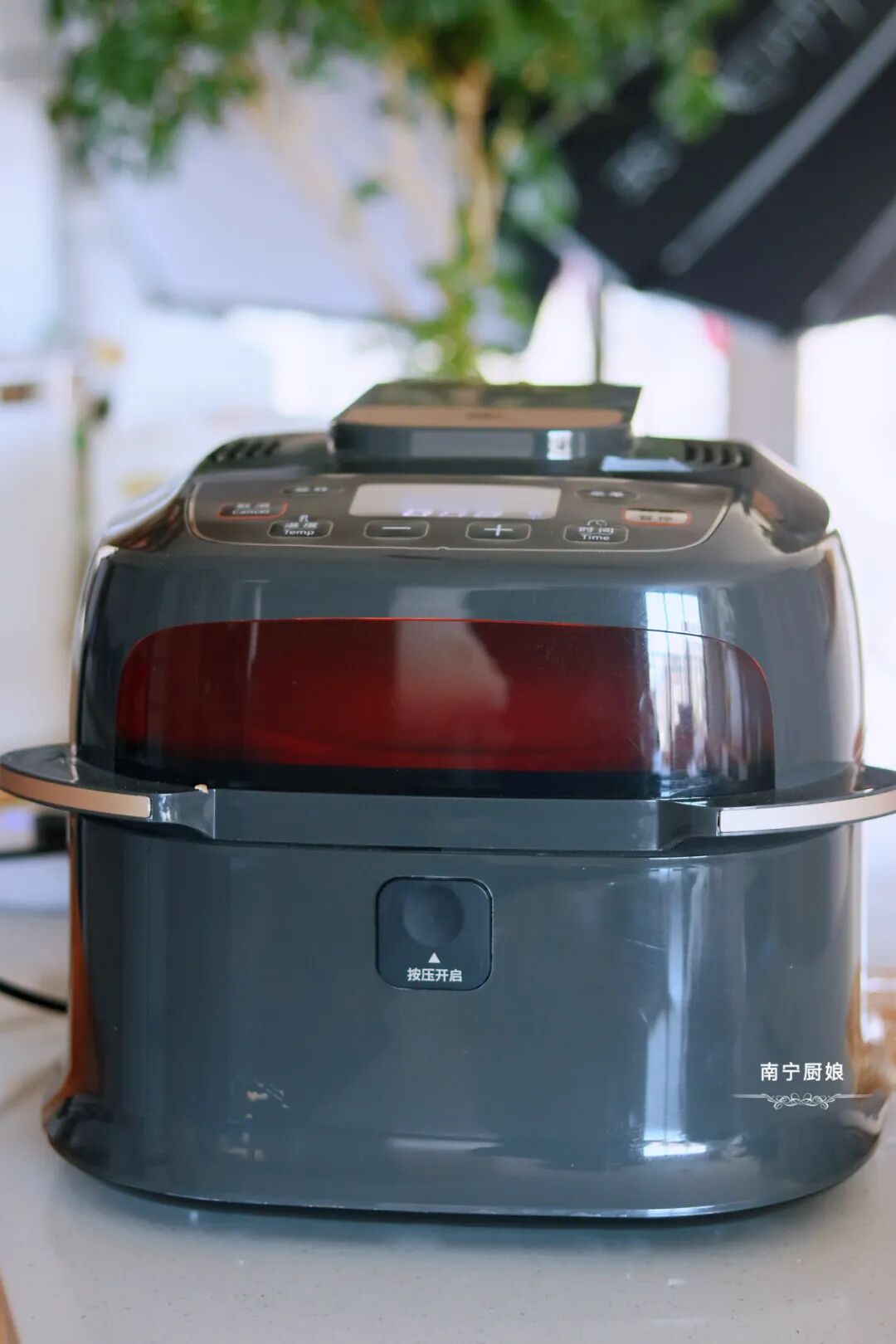 2、南瓜都处理好之后,放在空气炸锅里,设置180度烤8分钟。
