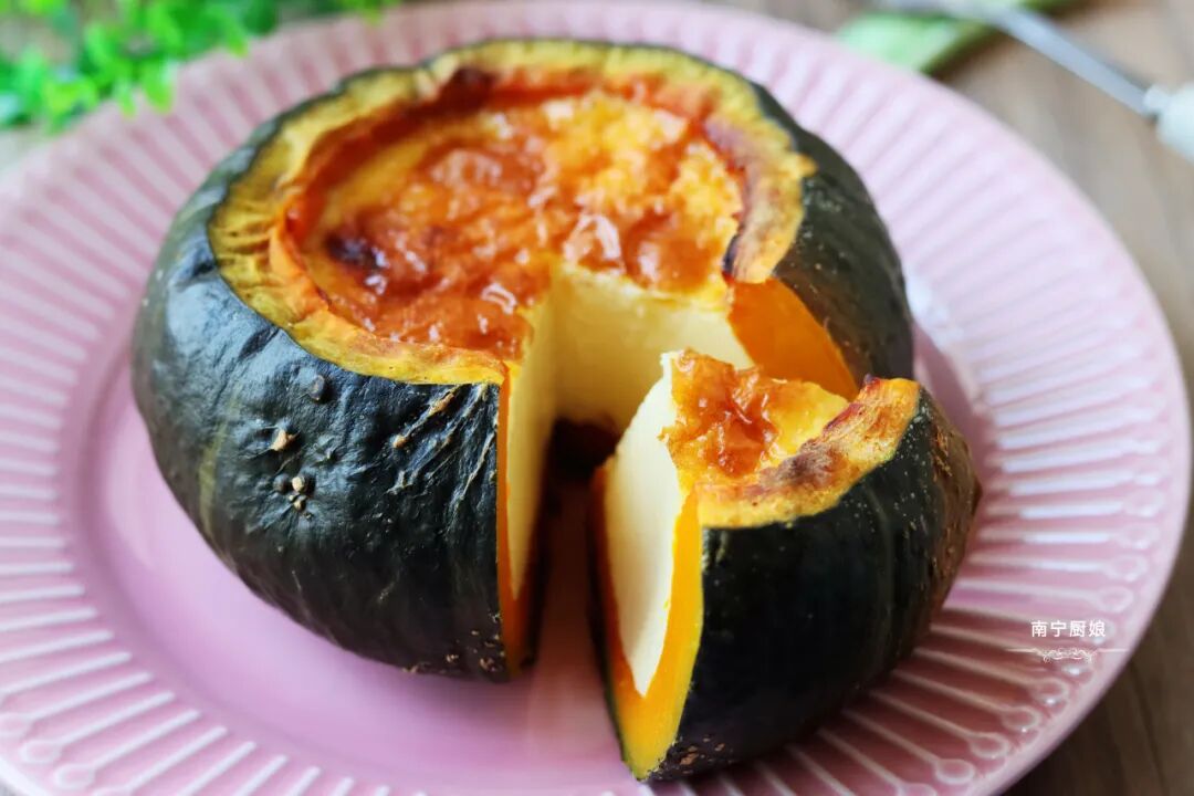 那么如果在这个时候,想要吃一些烤得干香软糯又好吃的美食有什么推荐吗?一般大家经常吃的就是烤板栗或者是烤红薯的,今天厨娘就在文章当中,来给大家推荐一个烤南瓜的新做法,这个烤南瓜软糯鲜香,而且内部还包裹着“鸡蛋布丁”哦!不论是从颜值上还是从味道上都非常的有食欲。