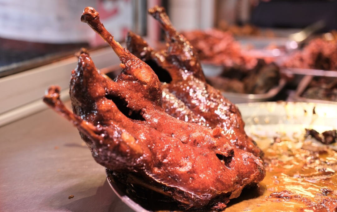 甜皮鸭,又名卤鸭,其制作方法源于清代宫廷饮食。经过民间发掘和改良,其卤水具有独特的风味。特征是色泽棕红,皮酥微甜,肉质细嫩,香气怡人。