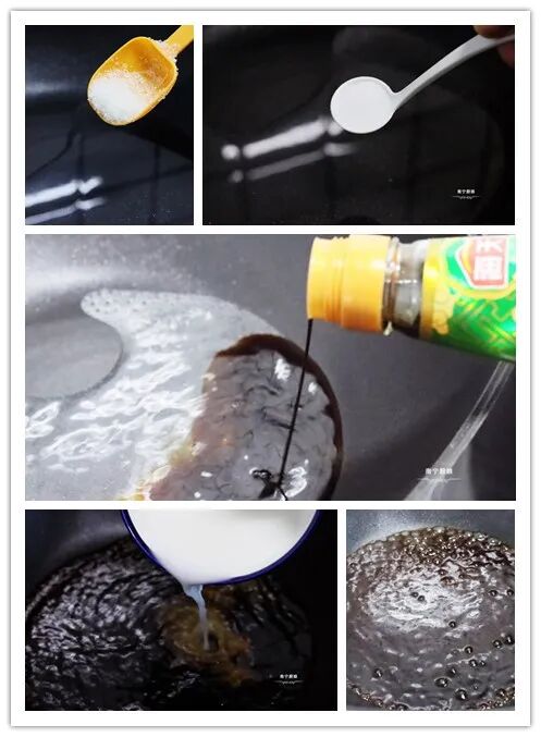 7、在蒸莲藕的过程当中,另起一口锅,往锅里加入小半碗的清水,然后依次加入一勺白糖、一小勺食盐、适量蚝油、小半碗淀粉勾芡汁,开中小火,把酱汁煮开并且调和成比较浓稠的状态。
