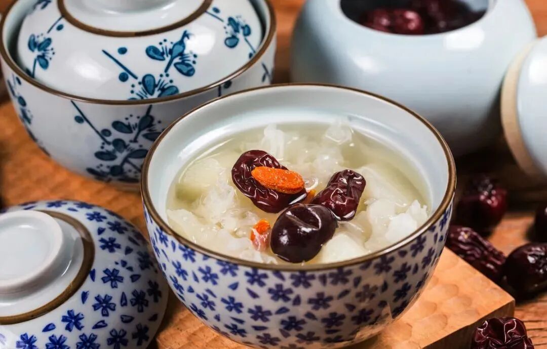 二、熬糖水时放一点红枣,能够润肺止咳。糖水铺里有一种润肺止咳的糖水总是大受欢迎,它叫“红枣银耳羹”。用红枣、银耳、冰糖三种食材混在一起熬,就能做出这一道人人都爱吃的红枣银耳羹了。每日食用一碗,不仅喝得甜蜜蜜,还能治好咳嗽呢!