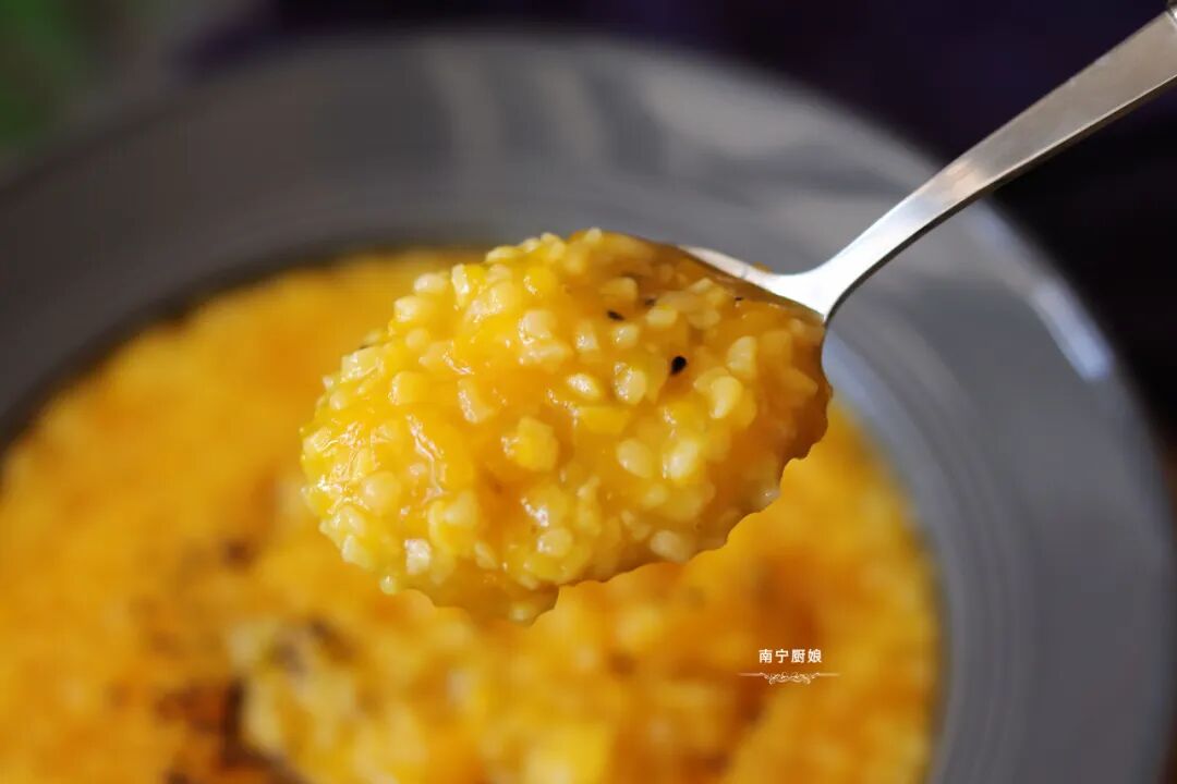 如果大家想要更浓稠挂糊的效果,那么也可以在熬小米的时候,再往锅里加入少量的糯米。
