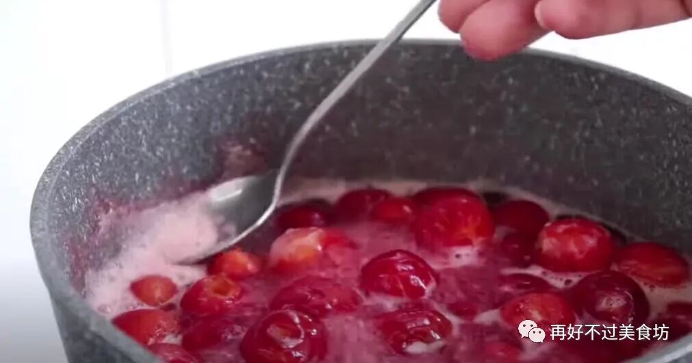 但要记住,期间要用勺子不停地搅拌,煮至粘稠状的时候,加入一些柠檬汁,直至樱桃肉被熬成果酱状,等待放凉之后,就装袋进行保存。