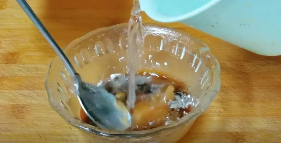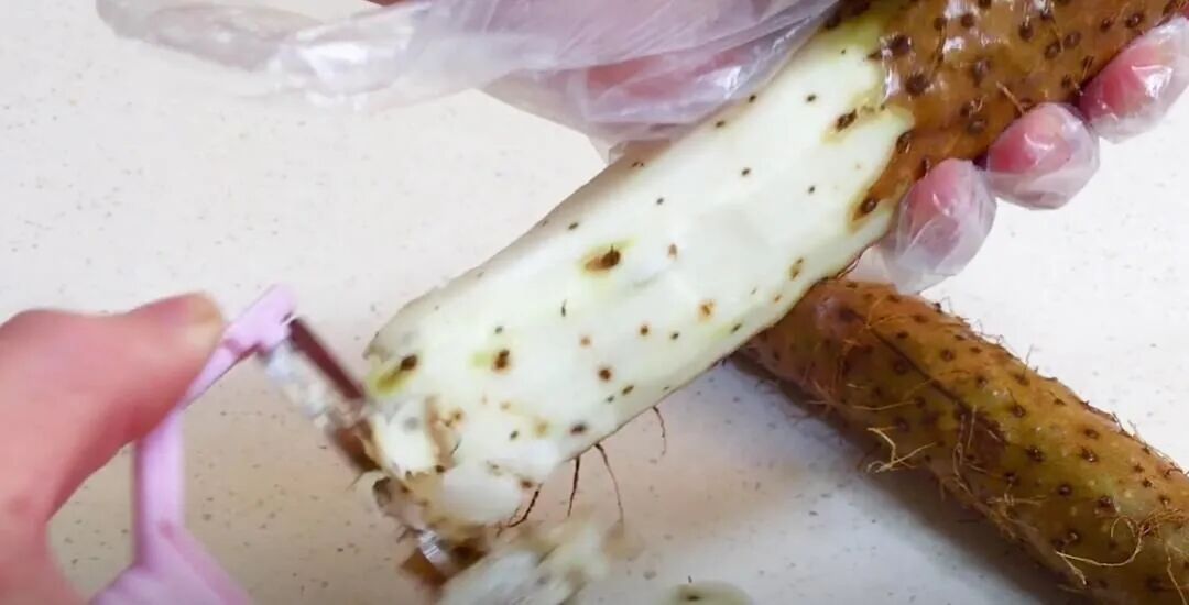 1、先在清水里加一勺白醋,把它搅匀,过会儿放山药,这样可以防止山药变色,我们在处理山药的时候,记住要戴上手套,不然容易手痒。