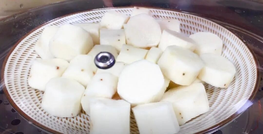 2、我们把山药的皮削掉,大概需要两小节山药就够了,切好的山药放在醋水里,再把山药切成小段,上锅把山药蒸熟。