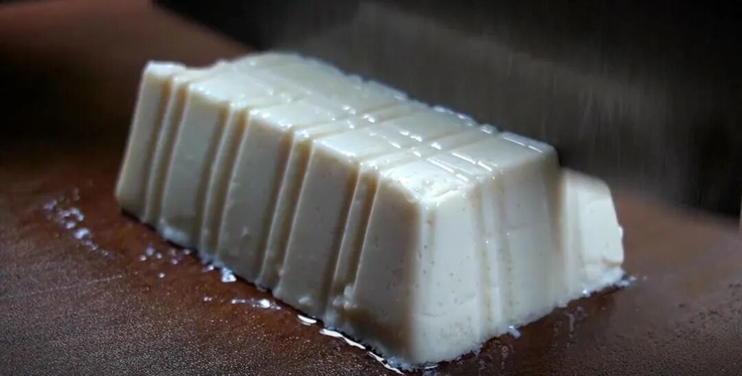 1、首先准备内酯豆腐一盒,切掉两个角,排气,轻轻拍打几下,拿掉包装盒,然后改刀切成小四方块。