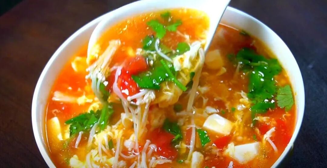 主要食材:番茄、豆腐、鸡蛋、金针菇、香菜