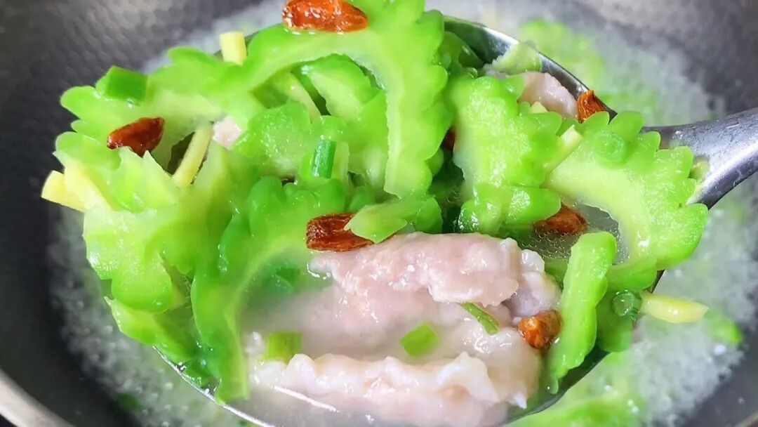 主要食材:苦瓜、瘦肉、面粉、姜丝、枸杞、葱花、鸡精