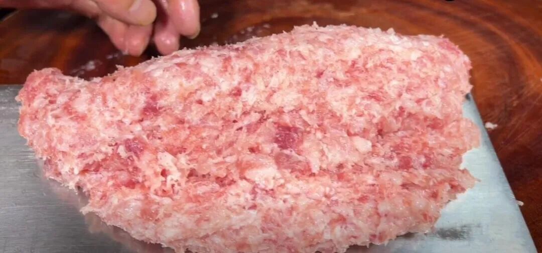 2、切片后再剁成肉末,家里有绞肉机的朋友,也可以用它来操作,不用剁得太碎,带一点颗粒感的最好。