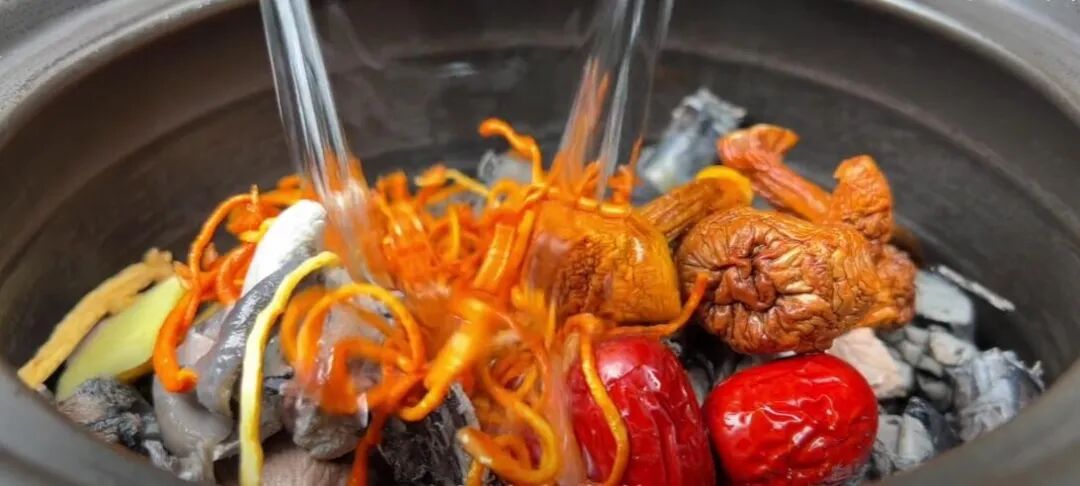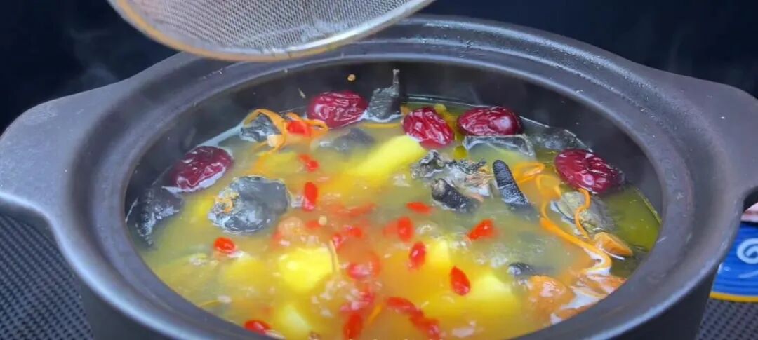 主要食材:白凤乌鸡、山药、红枣、生姜、枸杞、从草花、松茸、党参