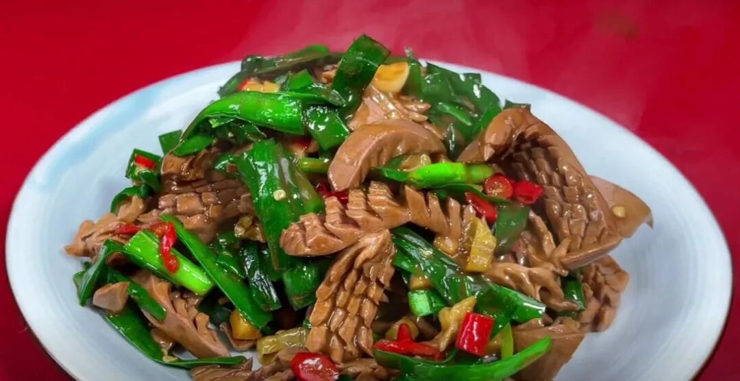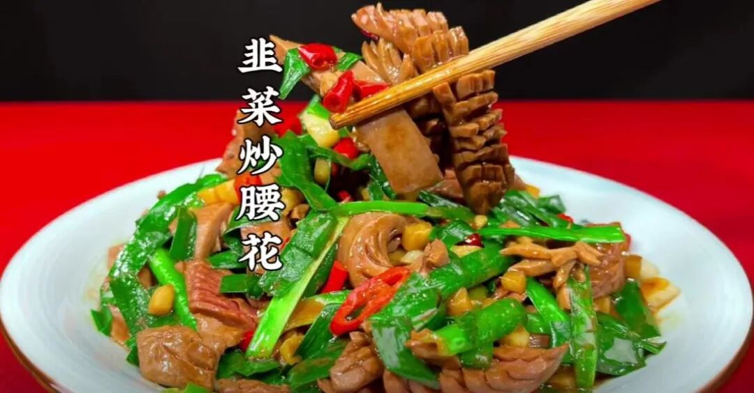10、这样做的韭菜炒腰花鲜香脆嫩,而且吃到嘴里一点也不腥,男人吃了,一口气上八楼,气都不喘一下。