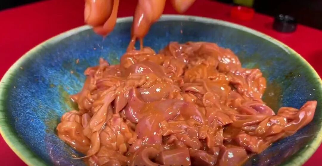 3、腰花切好后放入碗中,加点食盐,白醋,用手给它抓匀,这样能有效地去除腥味和异味。