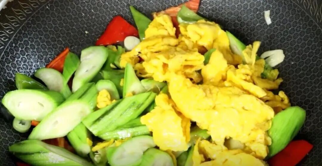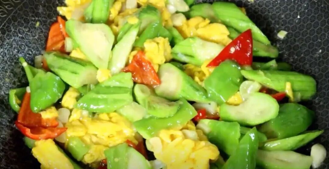 主要食材:丝瓜、红椒、青椒、鸡蛋、葱、蒜