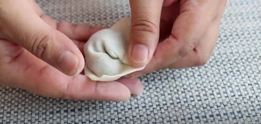 8、然后反过来把两个角叠在一起,一个元宝馄饨就做好了,接下来以同样做法,将所有馅料全包完。