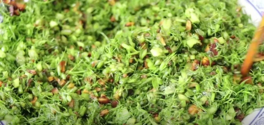 11、把茴香里面打入鸡蛋,吃起来是非常鲜嫩,这样调出来的馅料,吃起来又非常有营养,再加入香菇,真的非常美味,喜欢的话可以收藏一下。