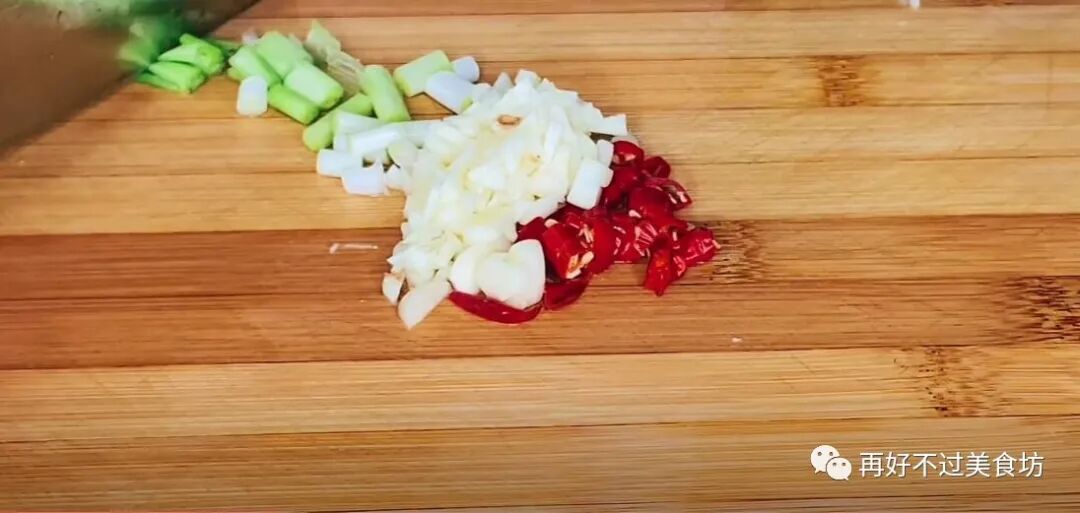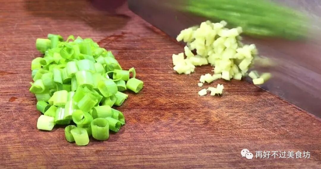 3、准备两个小米辣、几瓣大蒜给他切碎,小葱两根,葱白切成小段,葱叶切成葱花,放在碗中备用。
