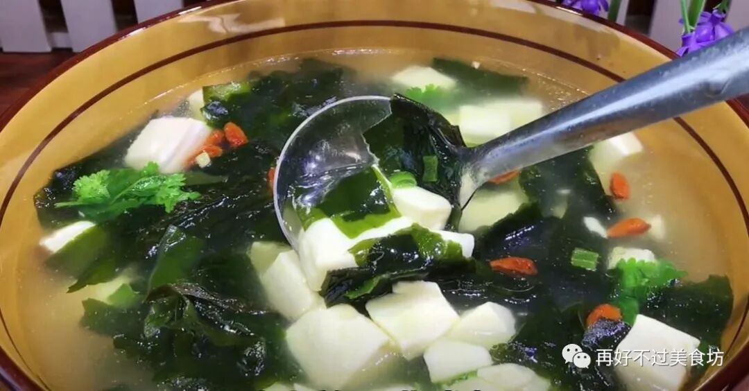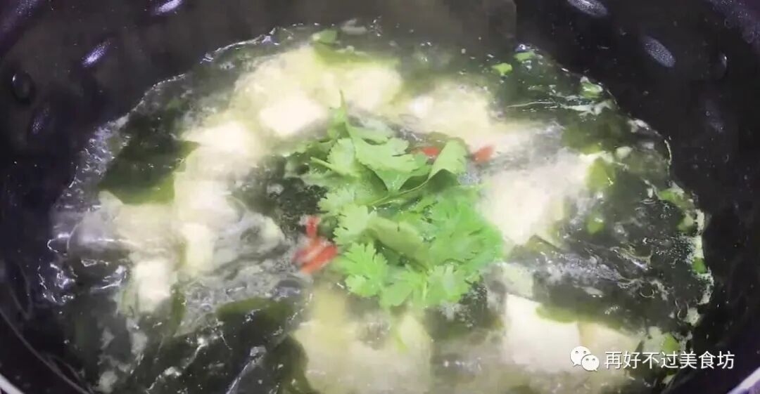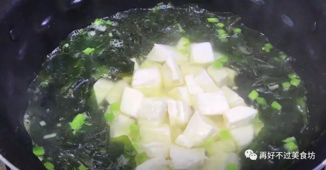 8、一道好喝又减脂的裙带菜豆腐汤就做好了,用来当做晚餐减脂最适合不过了。