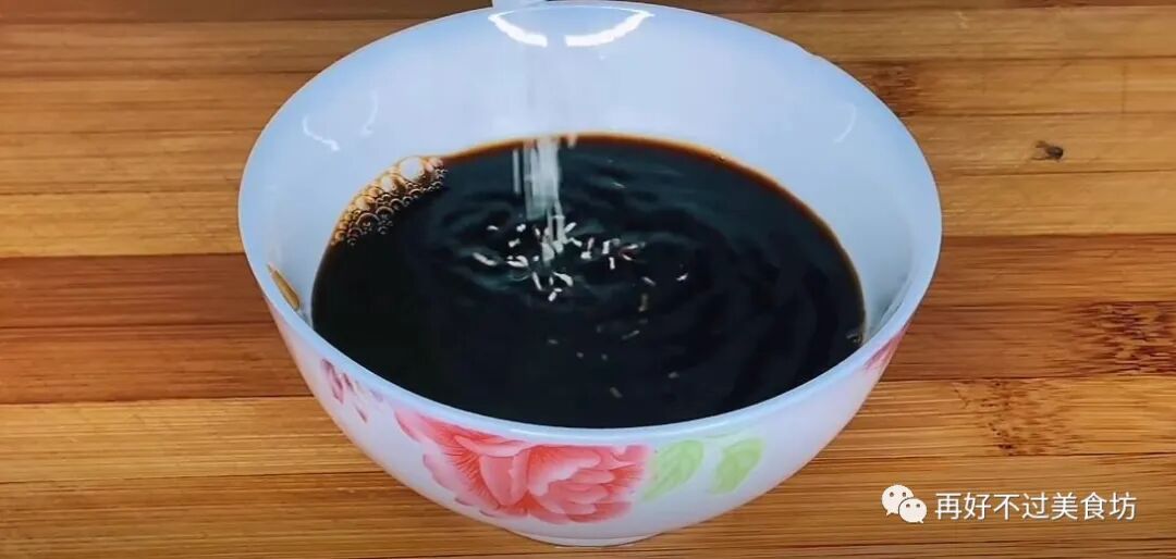 4、下一步调个料汁,加半勺盐,一勺生抽,一勺香醋,一勺蚝油、加点鸡粉,用筷子快速搅拌均匀。