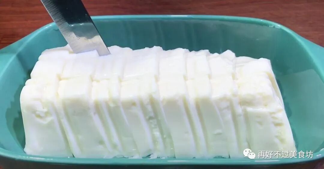 3、再准备一盒内脂豆腐,切成小块,内酯豆腐蛋白质含量高,水分大,口感比较滑嫩,非常适合减肥期食用。