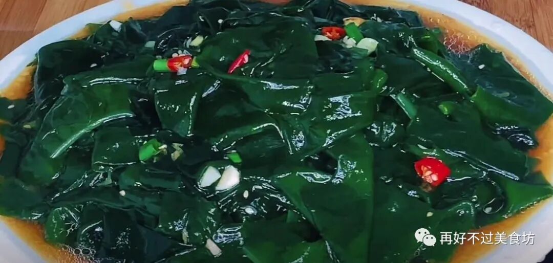 结语:裙带菜的价值比海带高,尤其是它的钙含量,比海带要高,甚至是牛奶的10倍,吃一口补18种氨基酸,是脂肪最怕的食物,一周吃2次,健脑补钙,腿脚贼有劲。
