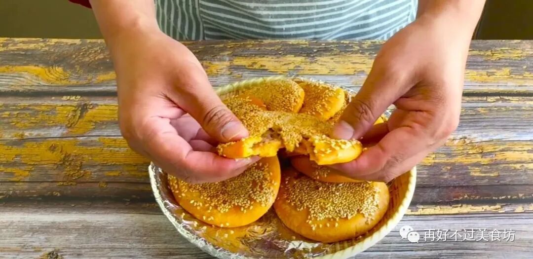 11、那芝麻的鲜香,糯米的软糯,再加馅料的香甜,搓成这个小饼,柔软香甜,吃起来解馋。