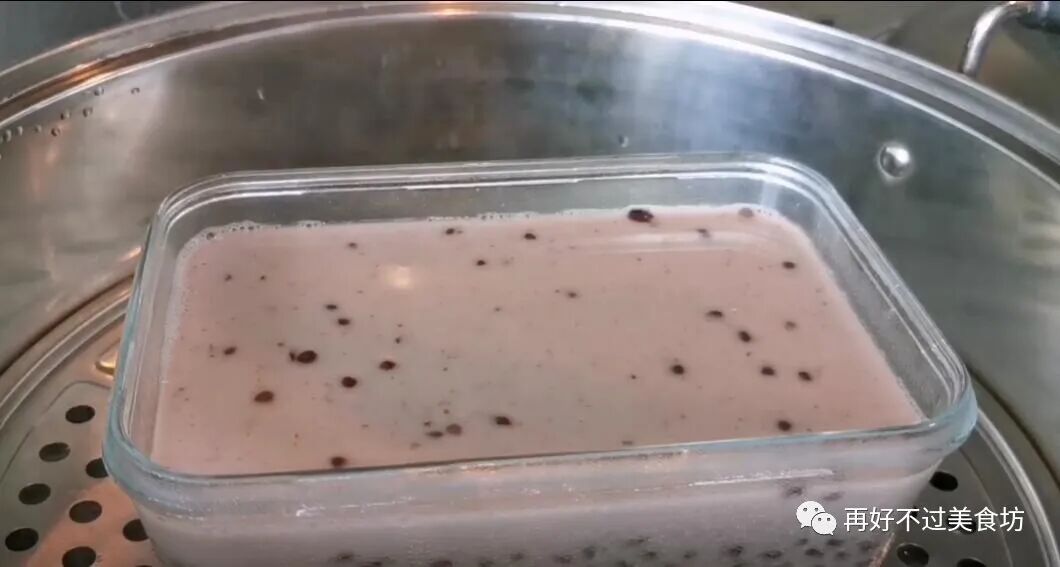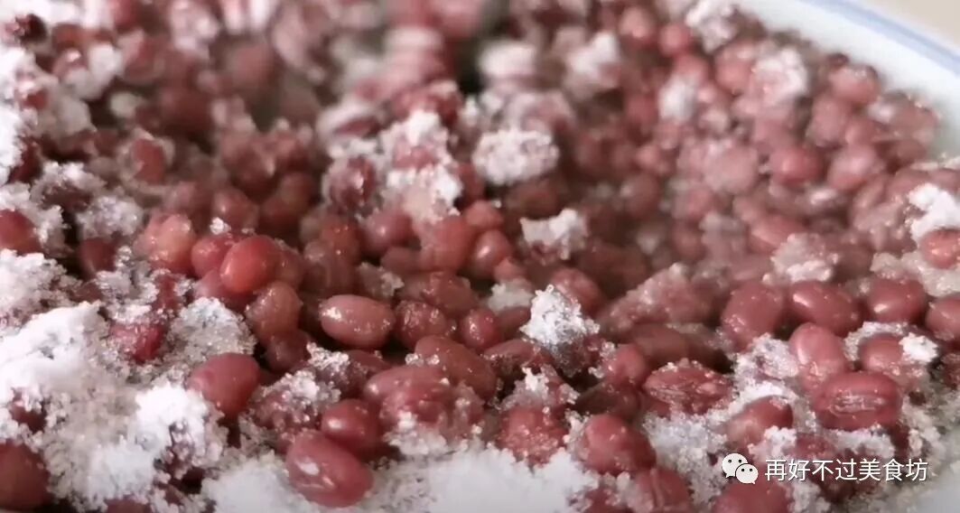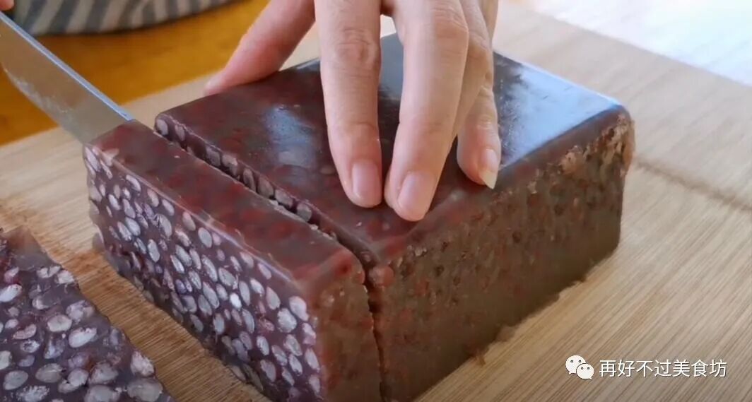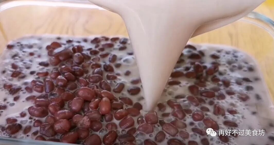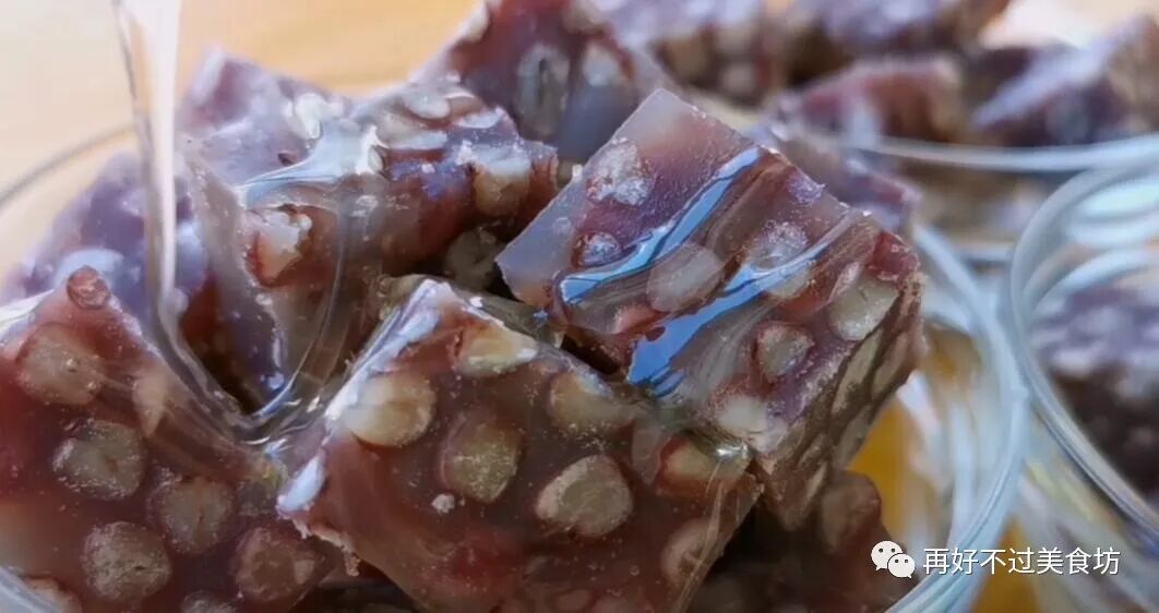 9、这样做出来的凉糕有淀粉的Q弹,还有红豆的软糯,非常好吃,可以直接吃。