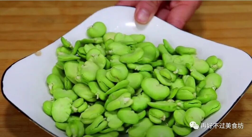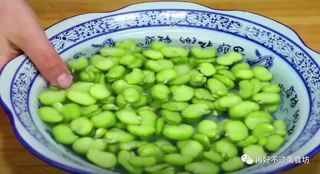 1、首先准备一些蚕豆,将蚕豆放入水中给它清洗一遍,洗净以后沥干水分,放入盘中备用。