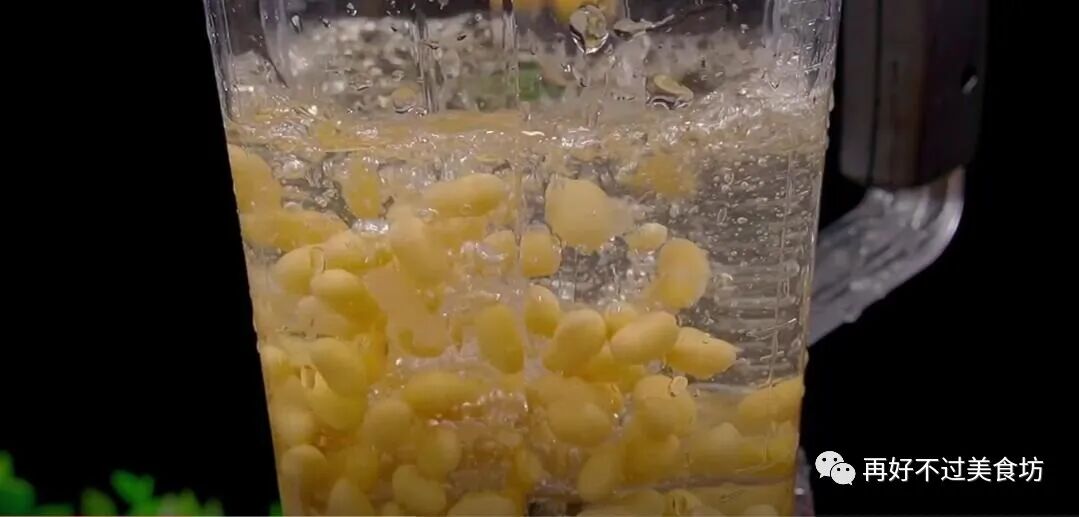 3、然后将黄豆和清水倒入破壁机中,开高速档,打半三分钟左右,一直把这个黄豆打成细腻的粉末。