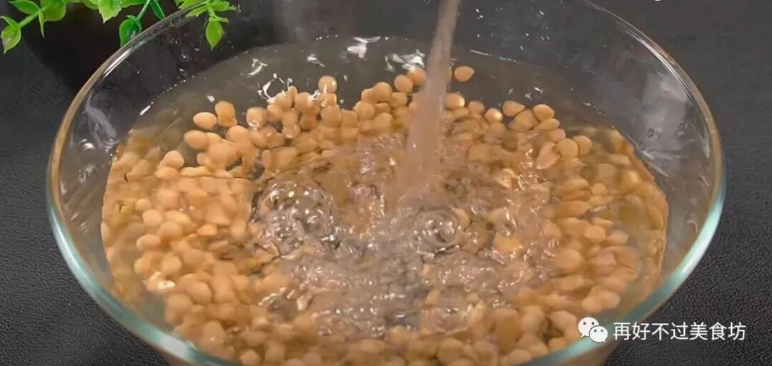 2、大家看一下,这是泡好后的效果,个个颗粒饱满,泡好的黄豆,仔细清洗一遍,洗去里面多余的杂质。