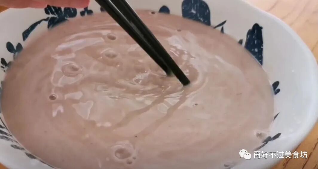 5、把它转移到大碗里,再加入200克土豆淀粉或者红薯淀粉,把它搅拌均匀备用。
