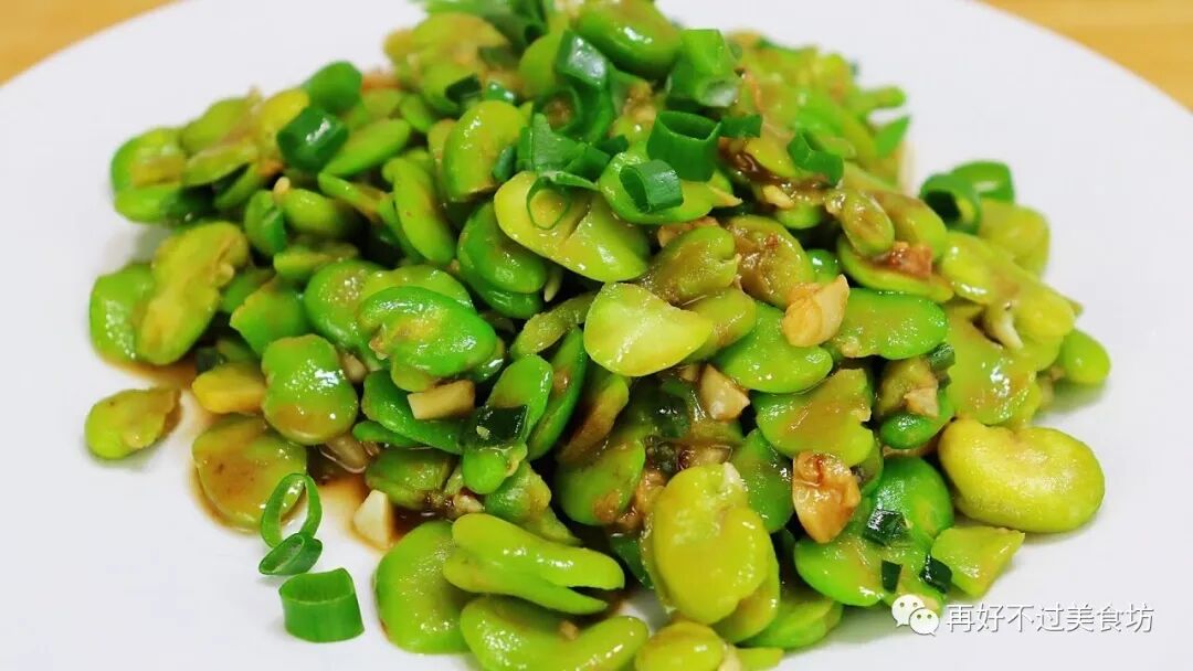 7、两分钟后关火出锅装盘,一道美味的葱油蚕豆就做好啦,吃起来鲜嫩可口,营养美味,喜欢赶紧试试吧。