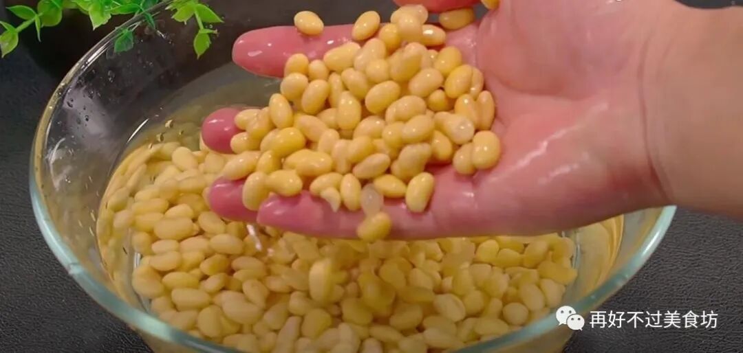 1、准备150克干黄豆,再倒入适量的清水,把这个黄豆浸泡一夜,夏天泡六个小时,冬天的话泡12个小时。