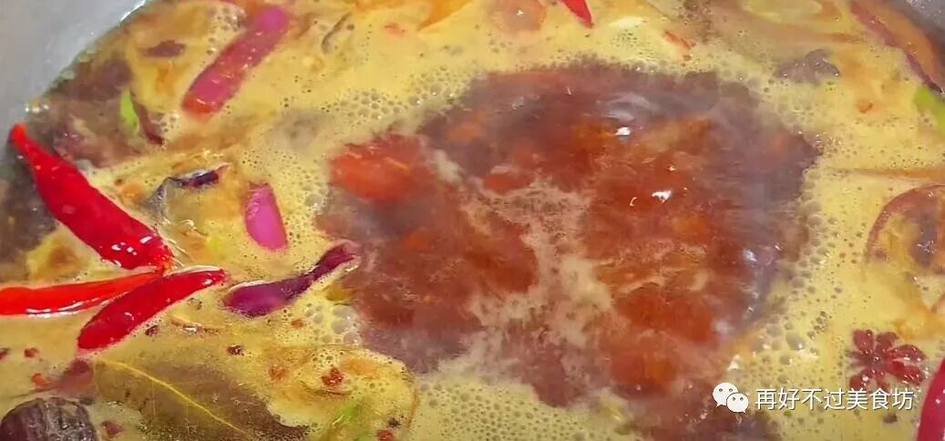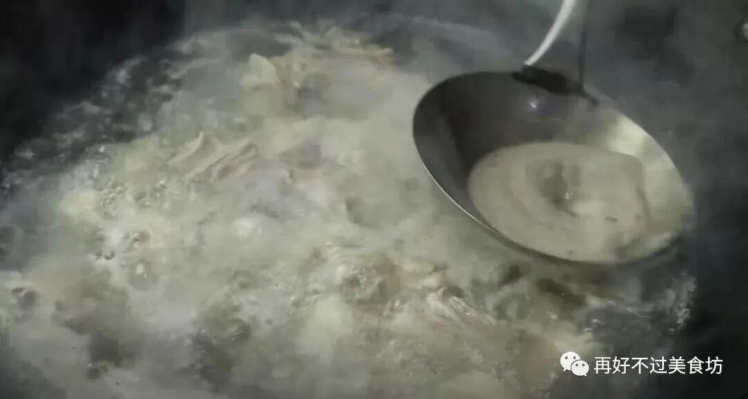 11、接着往锅中加入多一些的清水,再来一点食盐,开大火,把料汤完全烧开。