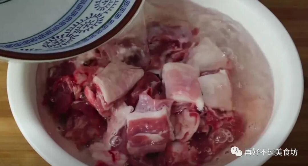 1、准备适量切好的羊肉,放在大碗里,再加适量的清水进去,泡上一个小时,这样可以有效的去除羊骚味。