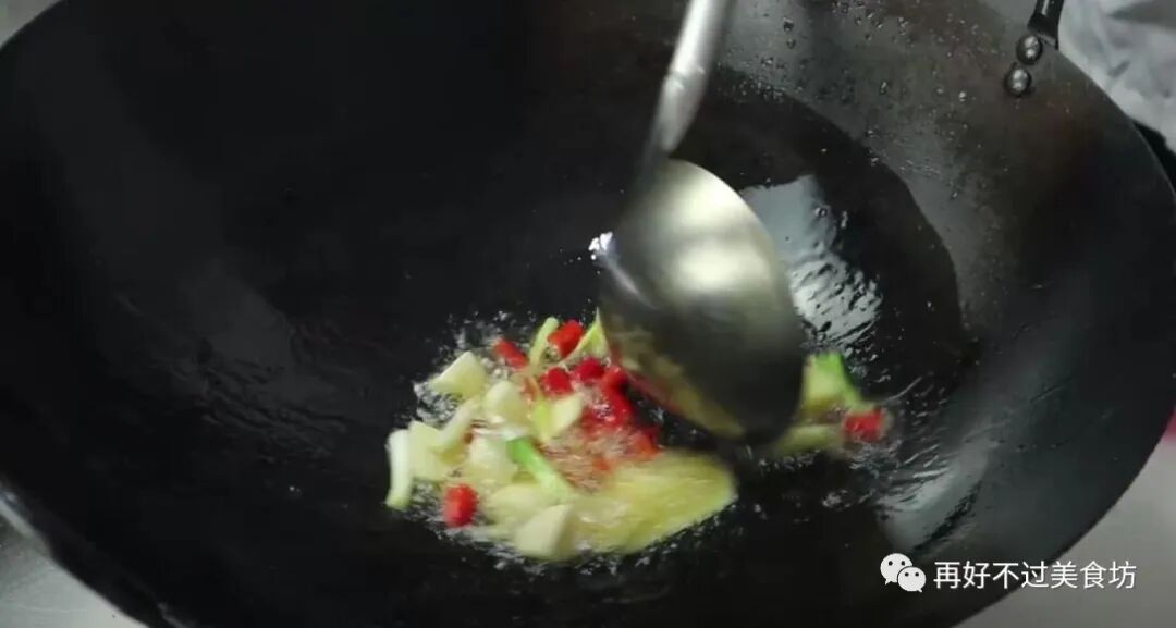 6、锅烧热,加入适量的食用油,加入葱姜蒜、小米辣进去炒香。
